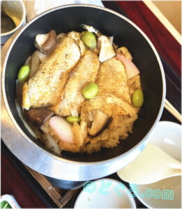炊きあがったノドグロをごはんと混ぜあわせていただきます。のどぐろも下味がついているのでしょう、窯の中でやわらかく蒸されてごはんとほどよく相まっていると感じました。