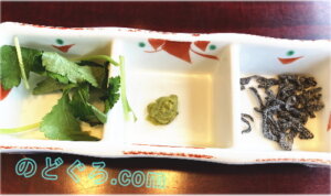糸三つ葉、山葵、切昆布