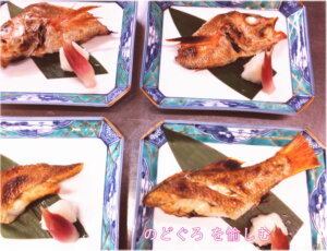 魚焼は"強火の遠火"と昔から言われますが、家庭ではなかなか望めません。家庭での魚焼はガスの魚焼グリルが多いようです。網にのどぐろの皮がくっついてしまうのを防ぐために油か酢を塗っておくとか、あらかじめグリル内を温めておくなど...ご存知のことでしょう。