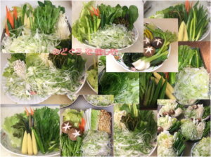 野菜:長ネギ、白菜、しめじ、シイタケなどキノコ類、水菜(芹または菊菜)など